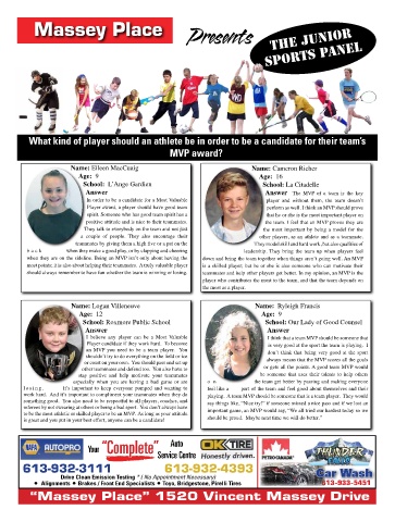 to be the most athletic or skilled player to be an MVP. As long as your attitude important game, an MVP would say, “We all tried our hardest today so we
