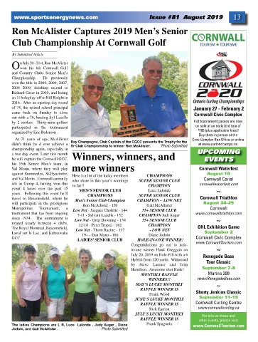 LADIES’ SENIOR CLUB HOLE-IN-ONE WINNER! www.CornwallTourism.com