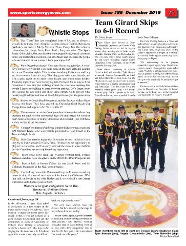 columnists, Jim, Jorge, Dave, Peter, Justin, Perry and Alex. The Sports season play, winning the A finals at the The Girard rink, which also plays in the