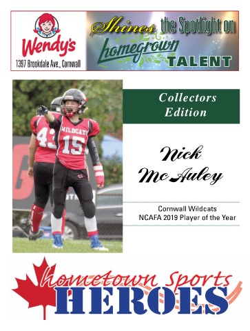 S ines the Spotlight on 1397 Brookdale Ave., Cornwall TALENT Collectors Edition Nick McAuley Cornwall Wildcats NCAFA 2019 Player of the Year