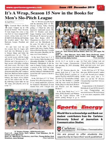 the slo-pitch game.” Says Dave Champions) in a Best 2 of 3 series