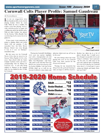 years. Sam played with the Upper Telus Cup Regionals,” said Sam. playing this year for the Cornwall “As for now, it’s still early in the
