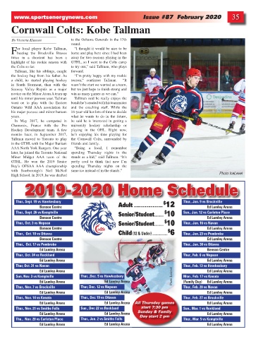 Sun, Nov. 3 vs Kemptville Thur. ,Dec. 5 vs Hawkesbury Photo Icelevel Mon., Feb. 17 vs Kanata