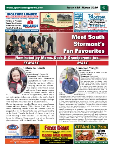 Gabriella Kench is this month’s Cameron Wright, March’s male South Stormont