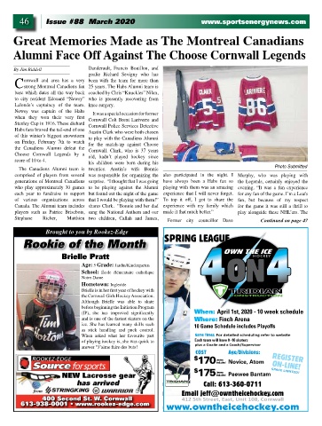 the Canadiens Alumni defeat the Cornwall. Clark, who is 37 years