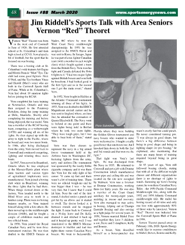 tournament matches. He was then fights there versus Canadian Navy As a boxer, Vern described would like to express condolences