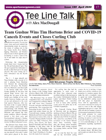 winner getting a shot at the Brier participating. This competition has COVID-19 pandemic. sport to come to the club during