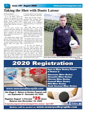 systematic approach when it comes on and off the soccer pitch.” Dante Latour,(13) plays with the Ottawa South United Soccer Club