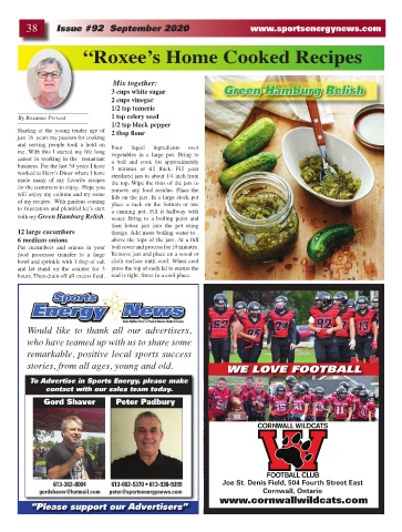 38 Issue #92 September 2020 www.sportsenergynews.com