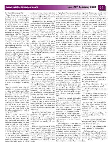 Continued from page 34 relationship work, I had to take that Psychology Today also reminds us superficial because you didn’t know