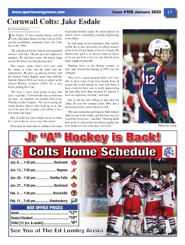 the Junior A Colts, but his third with the date, Jake shared that playing at OHA was life