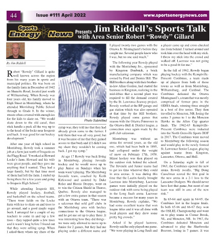 Rowdy played hockey, football, Quebec. Rowdy also managed to in the Long Sault arena. Lacrosse rink.”