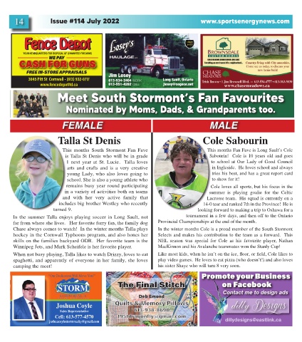 This months South Stormont Fan Fave This months Fan Fave is Long Sault’s Cole