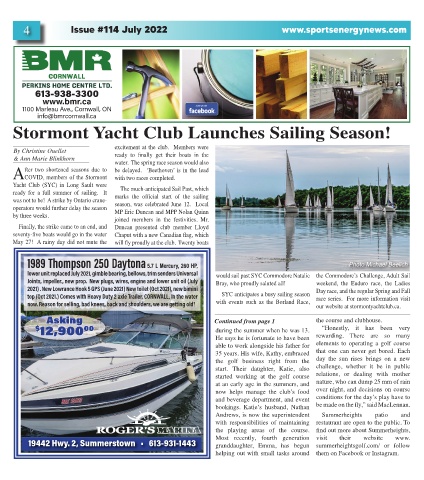 with events such as the Borland Race, our website at stormontyachtclub.ca.