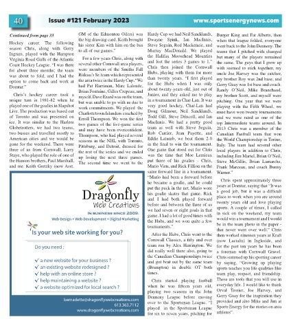 Coast Hockey League. “I was there several other Cornwall area players, Chris then joined the Cornwall the same. The guys that I grew up