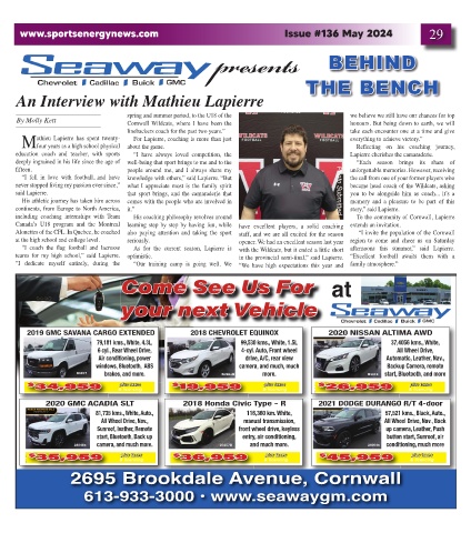 including coaching internships with Team His coaching philosophy revolves around To the community of Cornwall, Lapierre