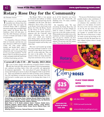 Cornwall Rotary Club is organizing advertising the Rotary Rose Day and the roses at the very last minute, and