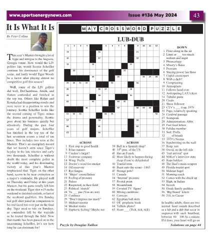 on the weekend. Tiger shot +15 on the 23 Political ‘stretch’ 59 Coveted TV ‘figure’ 50 Greek family goddess