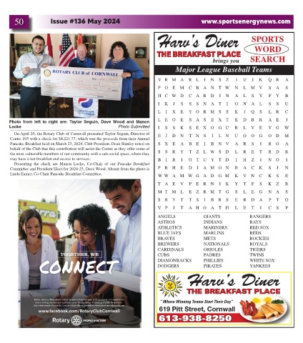 On April 29, the Rotary Club of Cornwall presented Taylor Seguin, Director of E J D N T N S I L N U O O G O D M