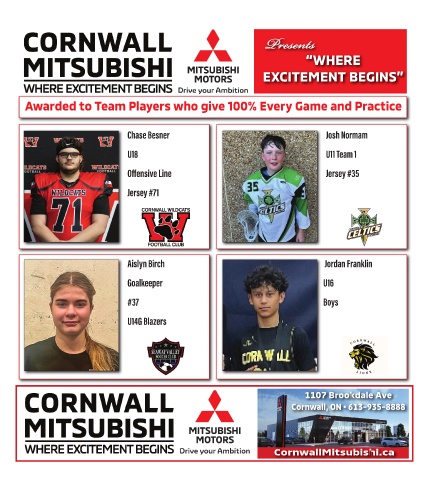 s P P sents e s t n “WHERE EXCITEMENT BEGINS” Awarded to Team Players who give 100% Every Game and Practice 1107 Brookdale Ave Cornwall, ON • 613-935-8888 CornwallMitsubishi.ca