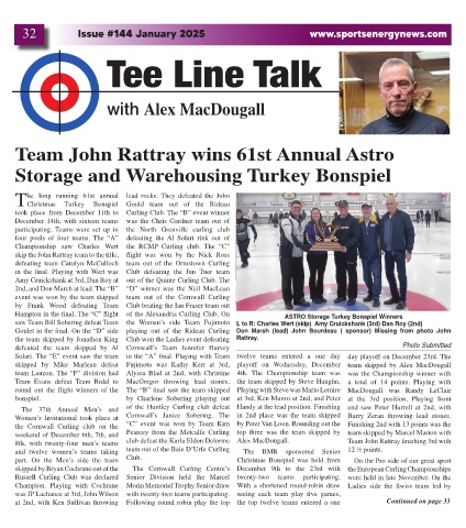part. On the Men’s side the team Club. Christmas Bonspiel was held from On the Pro side of our great sport