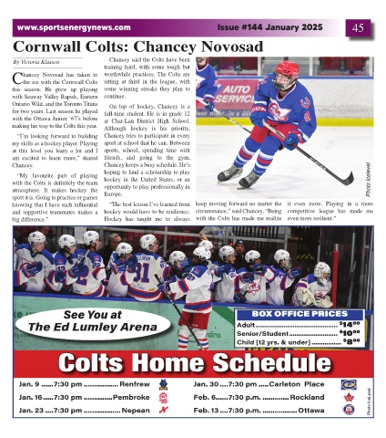 Cthe ice with the Cornwall Colts sitting at third in the league, with