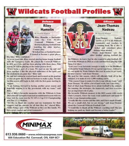 support, and my parents for all that they do,” shared Riley.               about the Cornwall Wildcats Football Club.
