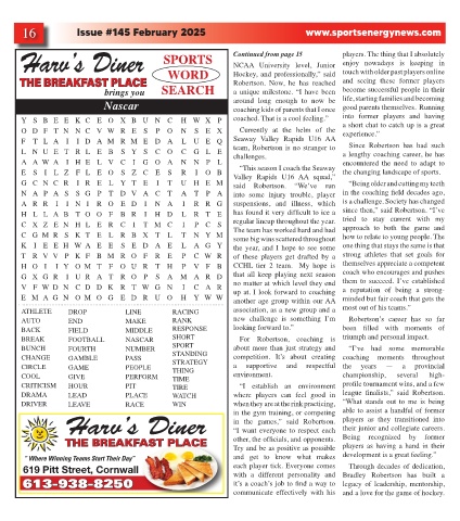 Harv’s Diner                                               in the games,” said Robertson.        players as they transitioned  into