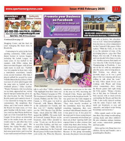 Geoffrion, and many others—they colour commentary for the Cornwall team and an excellent support staff.