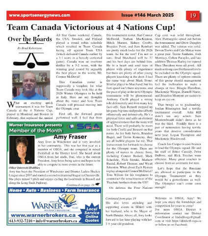 along the Long Sault Parkway.               Continued on page 19 *         Tkachuk brothers from the US?        The Olympics can’t come soon