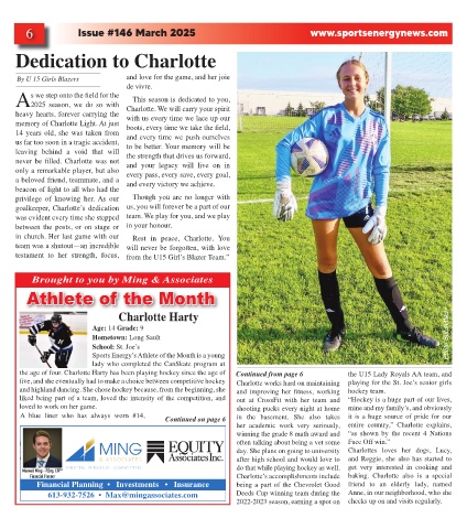 five, and she eventually had to make a choice between competitive hockey   Charlotte works hard on maintaining  playing for the St. Joe’s senior girls