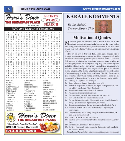 Harv’              s Diner                        SPORTS                      KARATE KOMMENTS
