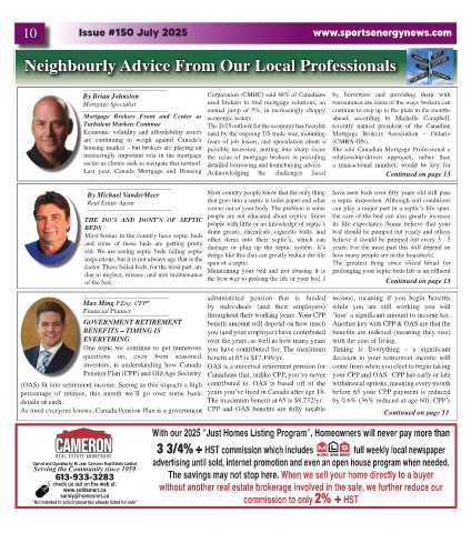 As most everyone knows, Canada Pension Plan is a government CPP and OAS benefits are fully taxable Continued on page 13