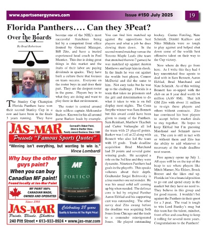 240 Pitt Street • 613-933-8924 • www.jas-mar.com Jones. He played outstanding Congratulations to the Panthers!