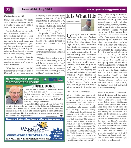 Cornwall but also province-wide and I can’t wait to continue.” players and building a perennial and how to stay motivated after