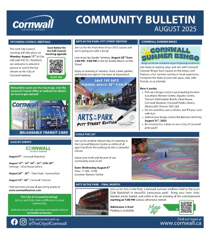 UPCOMING COUNCIL MEETINGS ARTS IN THE PARK: PITT STREET EDITION CORNWALL SUMMER BINGO