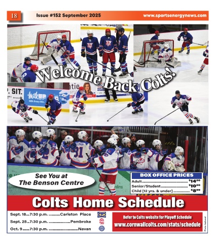 18 Issue #152 September 2025 www.sportsenergynews.com Welcome Back Colts! Welcome Back Colts!           Colts Home Schedule Colts Home Schedule Photo IceLevel