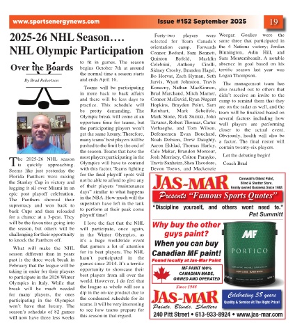 season’s schedule of 82 games         to see how teams prepare for            240 Pitt Street • 613-933-8924 • www.jas-mar.com