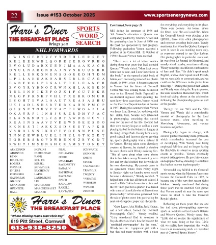 THE BREAKFAST PLACE WORD ‘49. Vernon’s education at Queens was the Cornwall Royals were playing in the