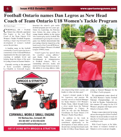 6                 Issue #153 October 2025                                                        www.sportsenergynews.com