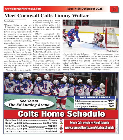 deep. Growing up in Cornwall, he when needed,” said Walker. pursue an education while playing For Walker, being a Colt is about