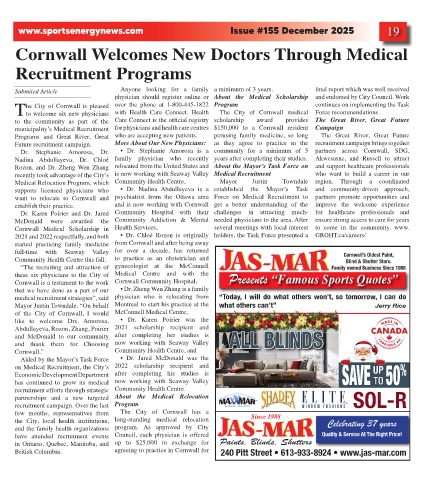 municipality’s Medical Recruitment for physicians and health care centres $150,000 to a Cornwall resident Campaign