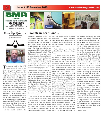 In the Pacific Division the rough start to take over the division team. The loss of Mitch Marner Coach Brad