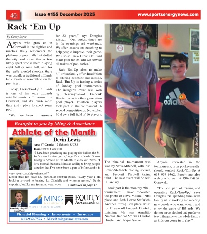 40 Issue #155 December 2025 www.sportsenergynews.com