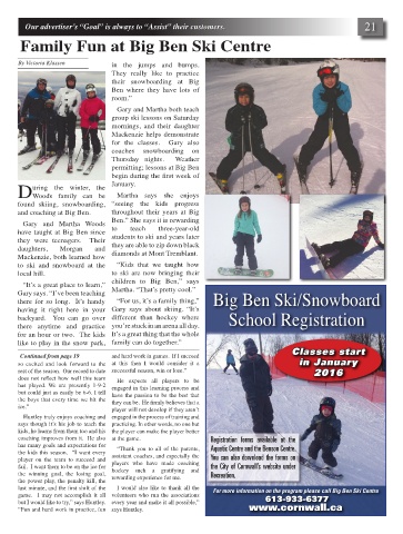 last minute, and the first shift of the I would also like to thank all the For more information on the program please call Big Ben Ski Centre