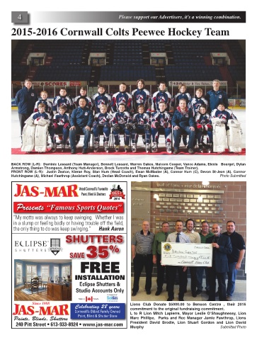2015-2016 Cornwall Colts Peewee Hockey Team
