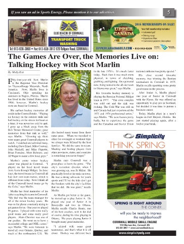 reside in the Cornwall rinks. “Playing 1972 and 1976 professional series,” Today, Marlin plays in a men’s