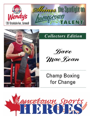 S ines the Spotlight on 1397 Brookdale Ave., Cornwall TALENT Collectors Edition Dave MacLean Champ Boxing for Change Submitted Photo