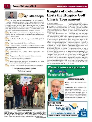 editorial columnists, Jim, Jorge, Dave, Peter, Justin and Perry. The Sports he Knights of Columbus recently Group, Giant Tiger, Miller Hughes